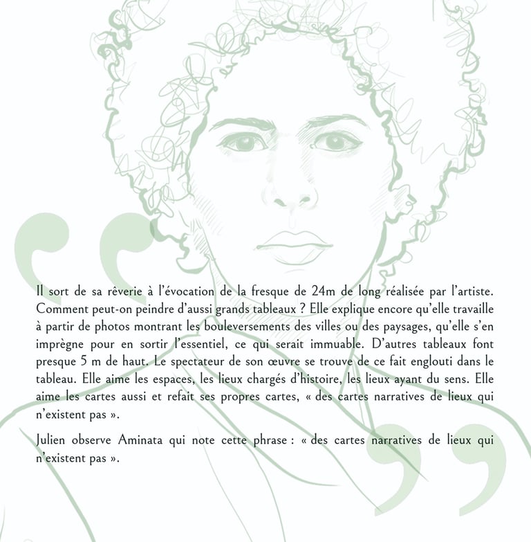 Pour Julie Mehretu, Ghislaine Bizot a choisi la nouvelle. Pour d'autres artistes vous trouverez un journal intime, une scène de théâtre, un conte, un échange de lettres, un poème etc...